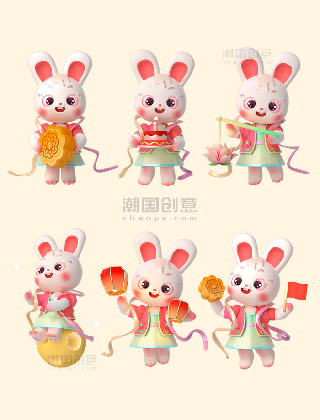 中秋节3D立体可爱兔子中秋节日吃月饼动物拟人IP