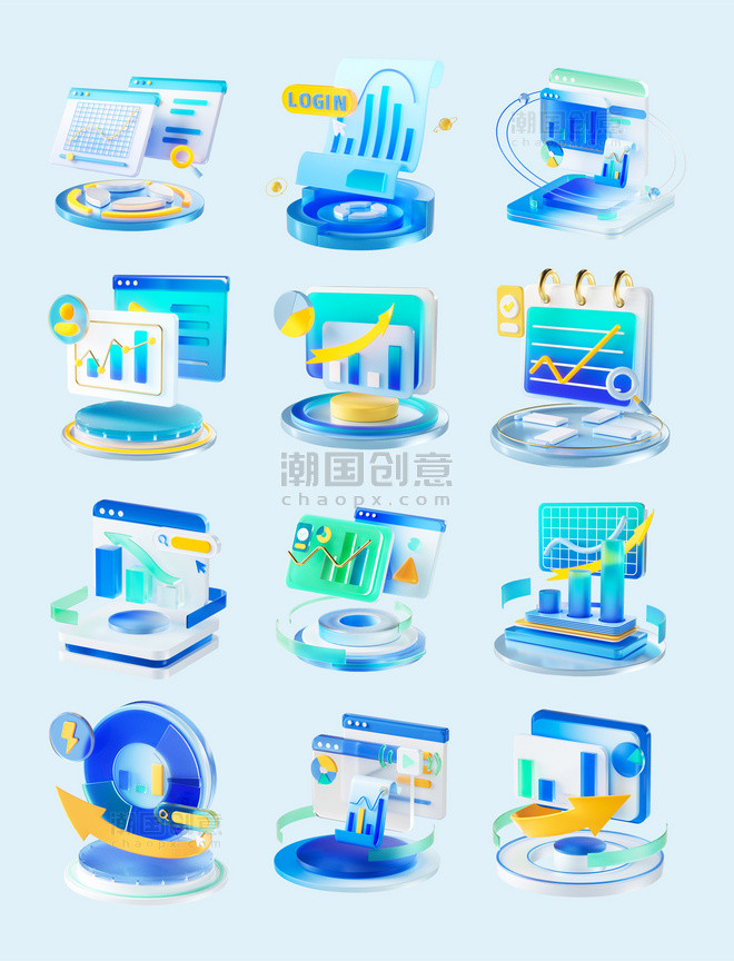 商务感3D立体金融图标分析商务办公理财投资金融元素