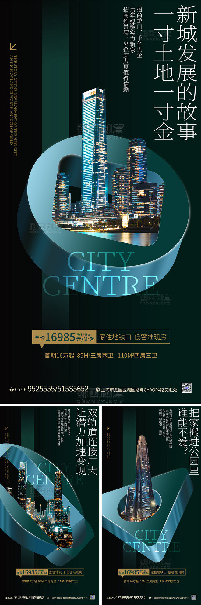 大气质感风房地产海报开盘建筑地产招商抽象抽象几何绿色