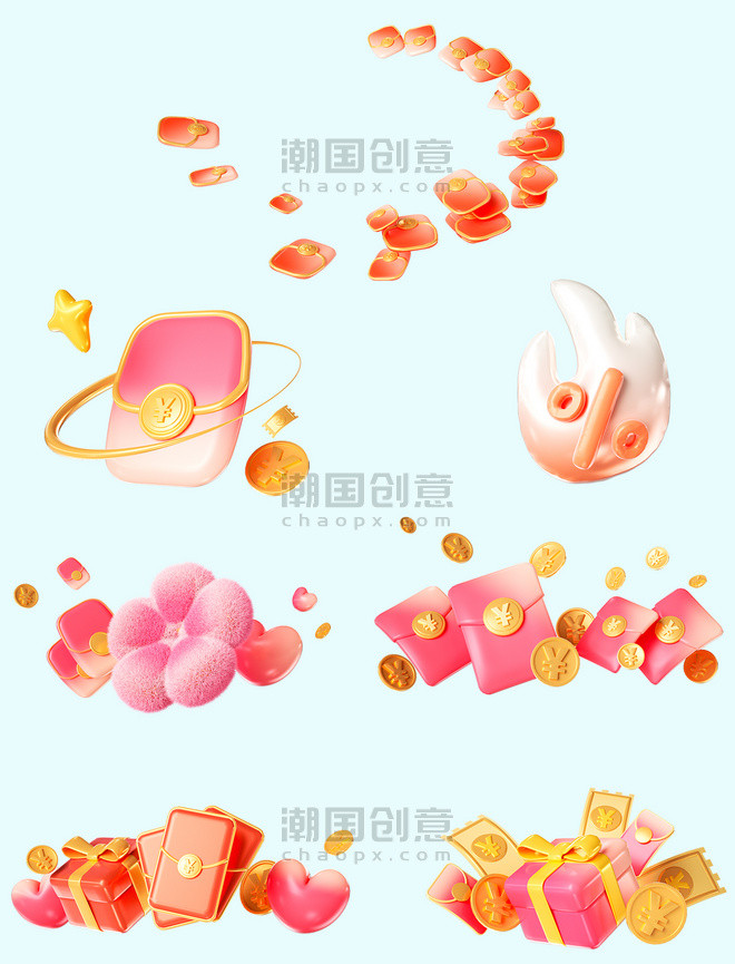 618电商促销3D立体漂浮环绕红包元素